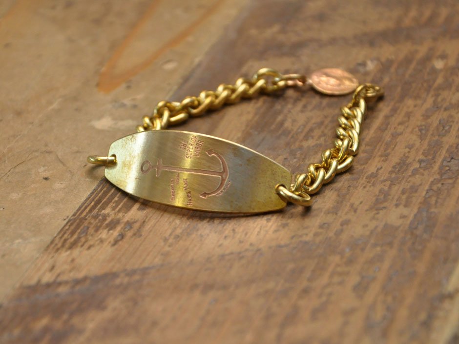 本次介紹的 Chain Bracelet,受軍用 ID Bracelet 啟發,使用黃銅材質製作,配合正面黃銅名牌的船錨 Logo 打印作為整體造型重點,以純粹的素材與質感取勝,洗鍊的外型設計,可輕易融入各式風格中。