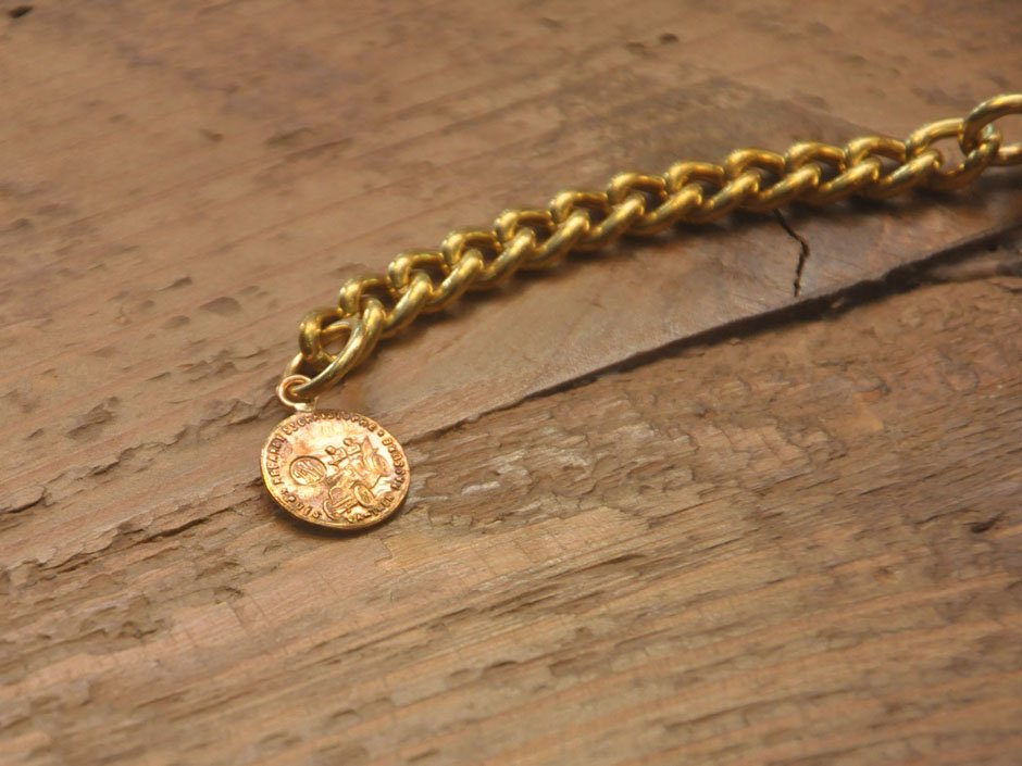 另附刻有聖克里斯多福的小圓牌,可以守護您的旅途平安,扣環構造特殊不易鬆脫,黃銅材質經久配戴使用後產生的明暗差異,也是養成的樂趣之一,俐落不花俏的外型更顯質感與成熟,無論男女佩帶都相當適合好看,少量現貨絕對值得您擁有!
